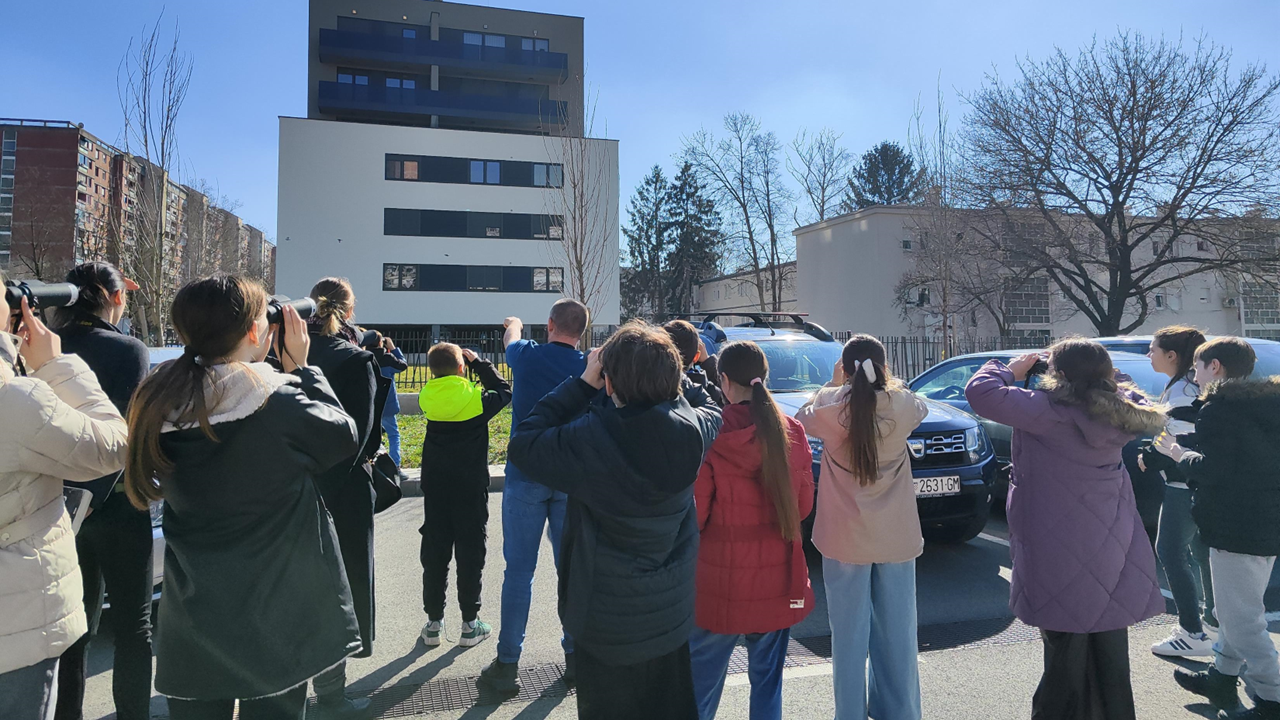 Nakon učionice, bilo je vrijeme za terenski rad. U školskom dvorištu, naši su učenici promatrali ptice dalekozorima, naučili se služiti priručnikom za determinaciju vrsta ptica te naučili da nema razloga strahovati od napada vrana u prolazu. Dovoljno je zaštititi glavu rukama i okrenuti se u njihovu smjeru, one se nas boje daleko više, a osim eventualnog zastrašivanja – nemaju druge načine zaštite svojih mladih. Više znanja = manje panike!