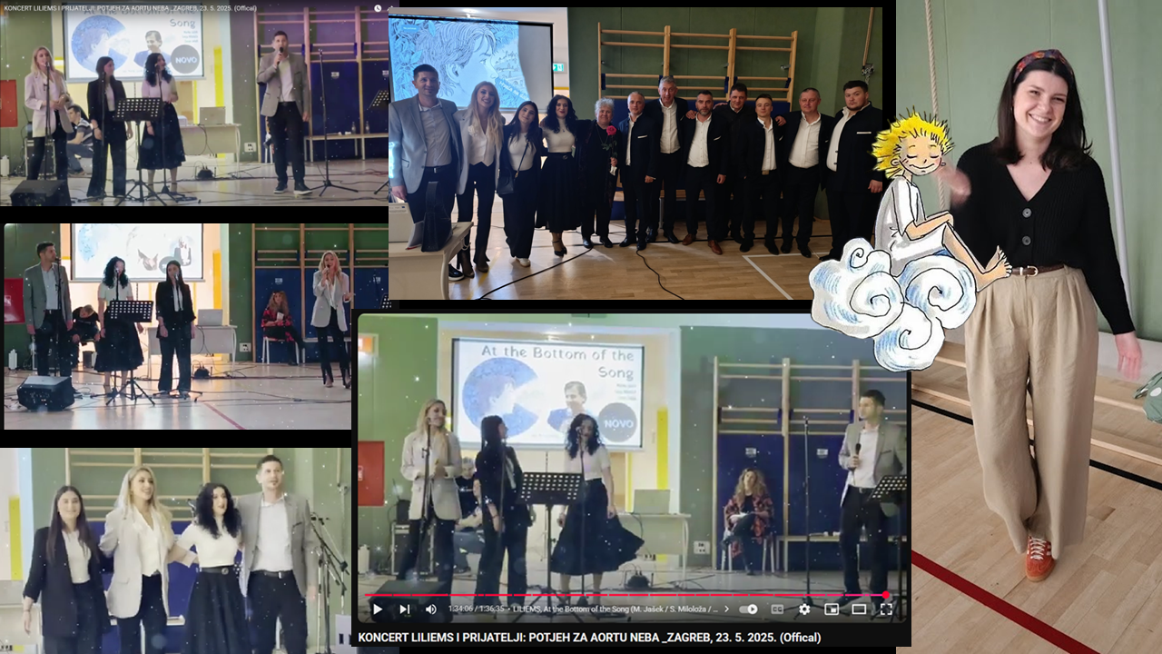 Kako smo dosad izvješćivali i pratili grupu LILIEMS i njihove planove, tako smo pratili i sam veliki događaj: humanitarni koncert održan u našoj školi 23. svibnja 2025. Prikupljeno je ukupno više od 720 eura donacija za aktivnosti udruge Jezerokut namijenjene memorijalu Aorta neba u čast Ive Milolože, a za učenike ŠPUD-a Zagreb. (Ulaznice su se mogle nabaviti po simboličnoj cijeni od 2 eura kod volontera iz 5. c.) Podsjetimo, Iva Miloloža autorica je Kaštelanovih portreta koje je donirala školi prije 13 godina, a također je bila i dugogodišnja suradnica Čarobne frule koju je angažirala naša bivša voditeljica novinarske grupe i naša utemeljiteljica Maca Tonković.