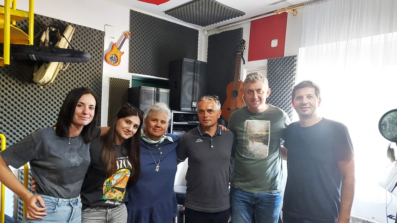 Ana-Marija Šipoš, Lana Pereža, Sanja Miloloža, Goran Vukmanić, Tomica Kolar, Marko Jašek sa snimanja pjesme Neon. Foto: G. Vukmanić