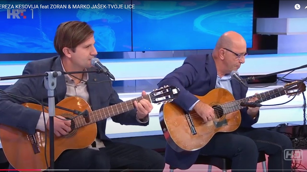 Dva glazbenika: sin Marko i otac Zoran, na snimanju HRT-ove emisije s Terezom Kesovijom.