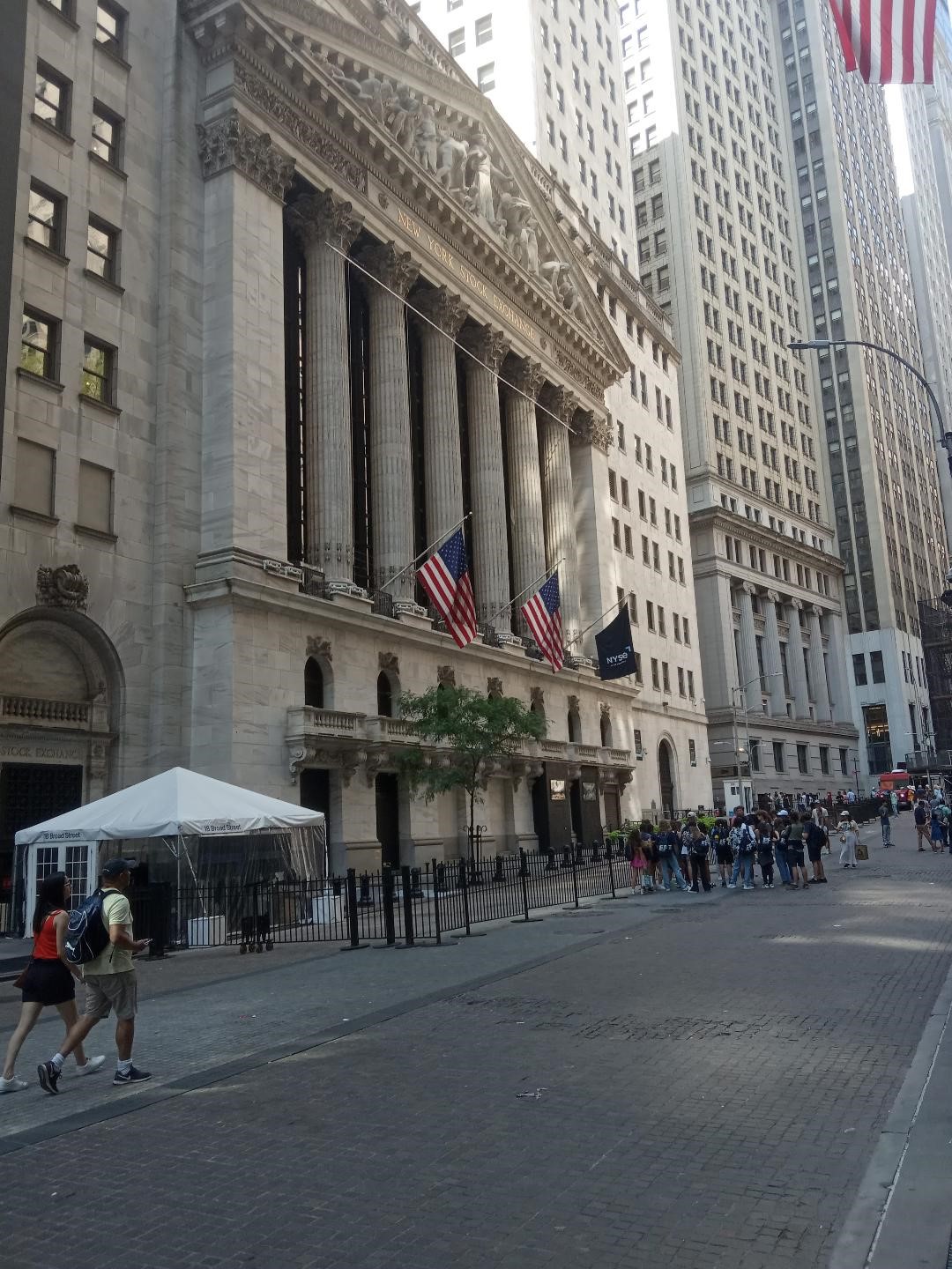 Nekih pola sata hoda od Memorijala nalazi se Wall Street, financijsko središte New Yorka, Sjedinjenih Američkih Država, ali slobodno mogu reći i svijeta. Ističe se zgrada burze, mjesto na kojem je službeno započela velika gospodarska kriza 1929. godine koja je ozbiljno uzdrmala svijet. Nakon obilaska Wall Streeta krenuli smo u pravcu Brooklynskoga mosta. Most premošćuje East River te povezuje Manhattan i Brooklyn, a trebalo nam je oko 45 minuta lagane šetnje s jednog kraja na drugi. Šetnja se uistinu isplati i uživali smo u prekrasnom pogled na Manhattan i Brooklyn te glavne znamenitosti grada kao što su Kip slobode, Empire State Building te Svjetski trgovački centar. Mjesto je u gradu koje se nikako ne smije propustiti. Nedaleko od mosta nalazi se zgrada Ujedinjenih naroda, svjetske mirotvorne organizacije.