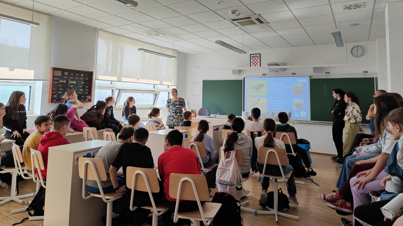 Osnovnu školu Jure Kaštelana posjetila je na poziv profesorice Ive Štefančić udruga za biološka istraživanja BIOM. To je nevladina strukovna organizacija koja se bavi zaštitom prirode i okoliša provodeći biološka istraživanja i popularizirajući prirodne vrijednosti. Jedna je od vodećih organizacija civilnog društva za očuvanje prirode u Hrvatskoj. Djeluje od 2006. godine i predstavnik je Hrvatske u BirdLife Internationalu, najvećoj svjetskoj mreži za zaštitu ptica i prirode. Bavi se zaštitom i proučavanjem divljih ptica te drugih vrsta i staništa, borbom protiv krivolova i drugih opasnosti za živi svijet, okuplja zaljubljenike u prirodu, organizira volontiranja te educira mlade i odrasle o prirodi i važnosti njezina očuvanja.