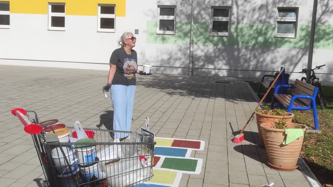 Učiteljica Jasna Ilijaš Zergollern koristila se različitim bojama da bi naslikala poligon na školskom trgu